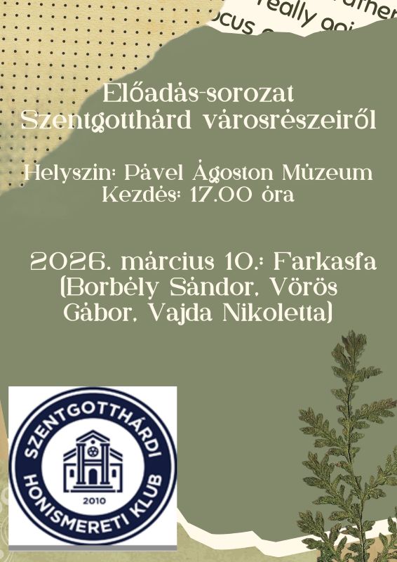 2026. március 10-én került sor az Előadás-sorozat Szentgotthárd Városrészeiről program 4. alkalmára a Pável Ágoston Múzeumban.